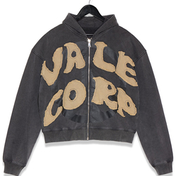 Parche bordado Vintage lavado ácido Zip sudaderas con capucha fabricante francés Terry 480 Gsm peso pesado grueso recortado cuadrado 3D impreso