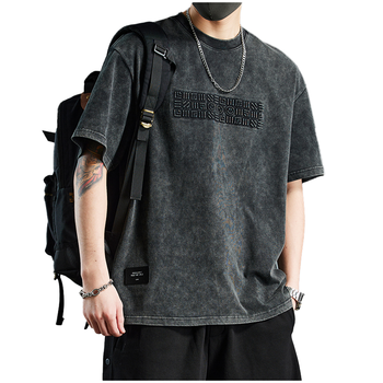 בגדי גברים צבע מותג רחוב חדש בעבודת יד דיו התזה בציר חולצת טריקו שרוולים קצרים רופפים גברים מפעל סיטונאי ספוט